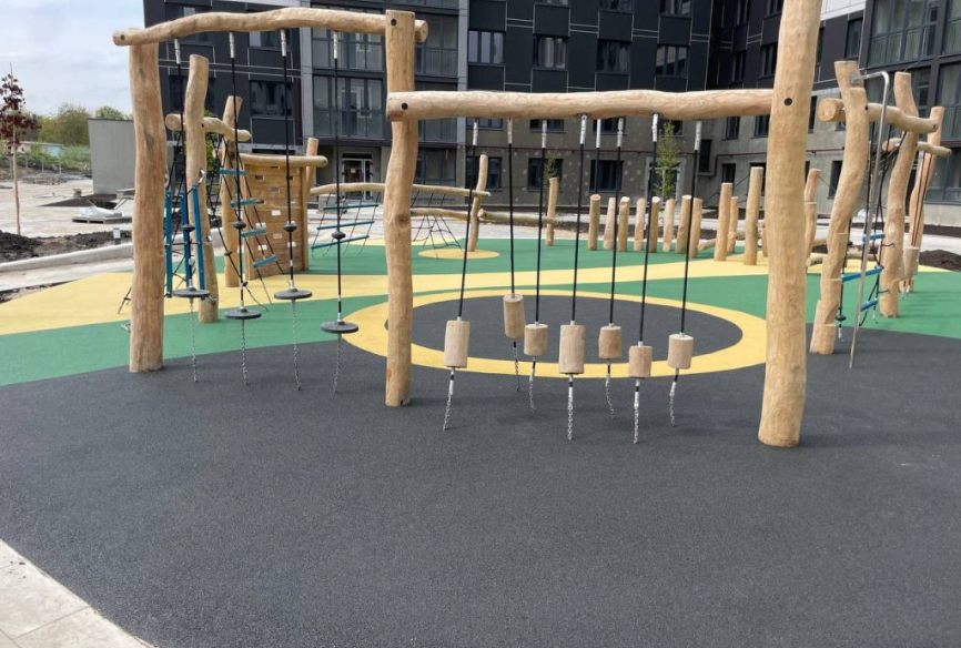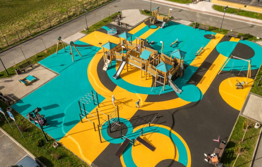 Для наших дворовых площадок в ЖК «Гармония» мы выбрали покрытие Сэндвич Вивигам. Оно оказалось не только красивым, но и практичным: отличная амортизация, лёгкость в уходе, никаких луж и скользких зон. Идеально для детских игр круглый год!